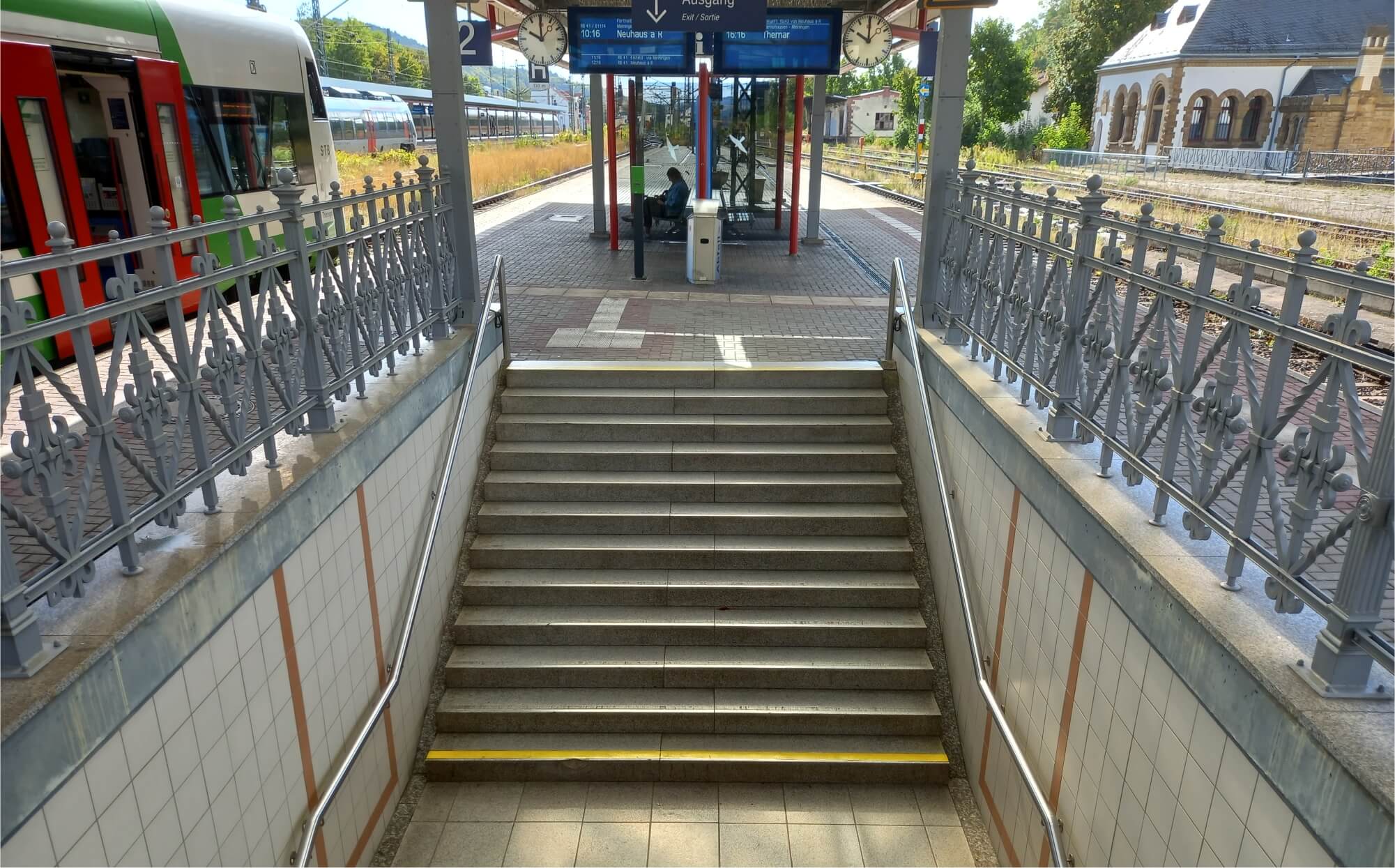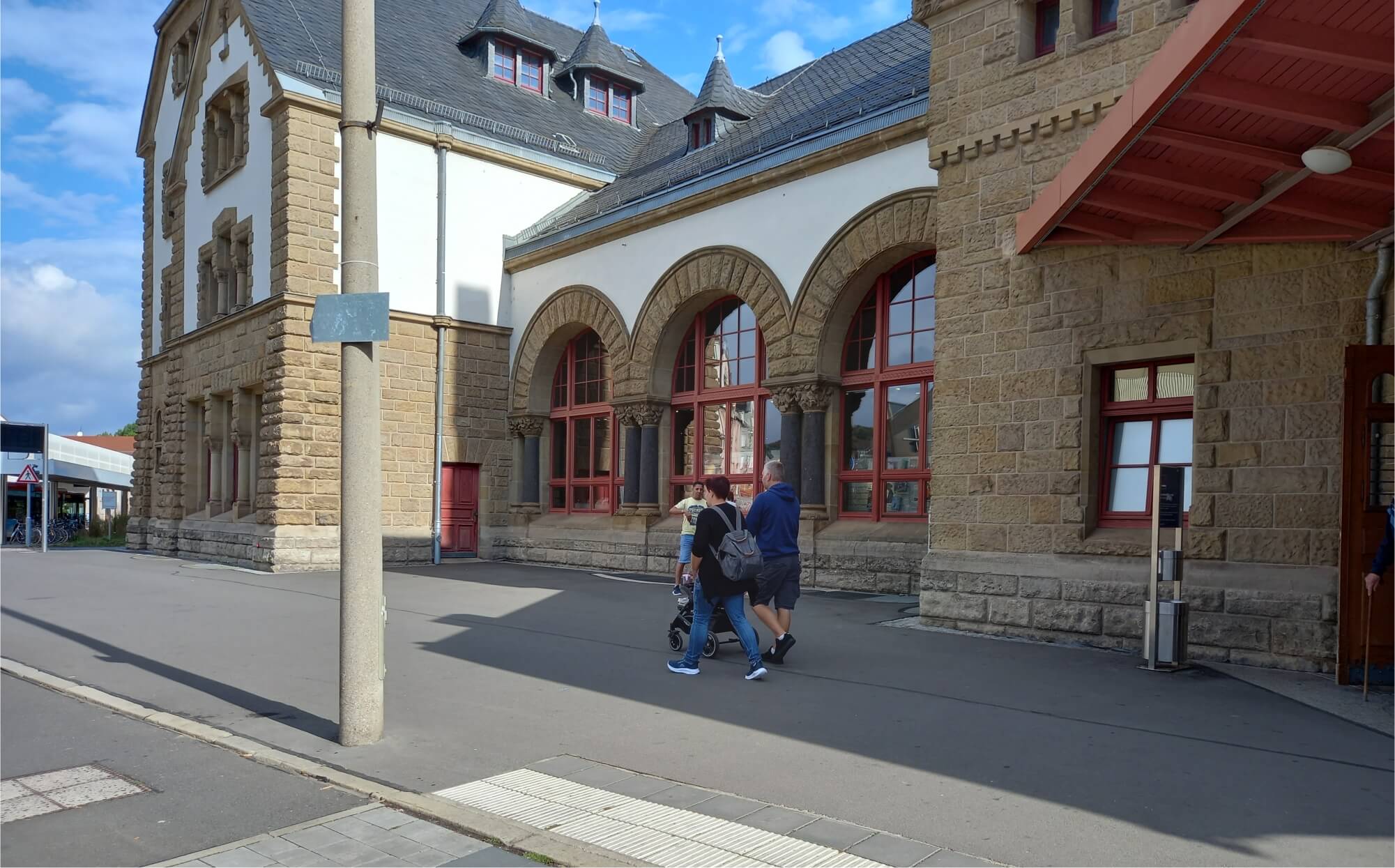 Vor dem Haupteingang des Bahnhofes mischen sich nicht-jüdische und jüdische Eisenacher:innen. Das ist ungewöhnlich. Kannst Du erkennen, wer an diesem Samstag wieder nach Hause gehen kann – und wer nicht?
